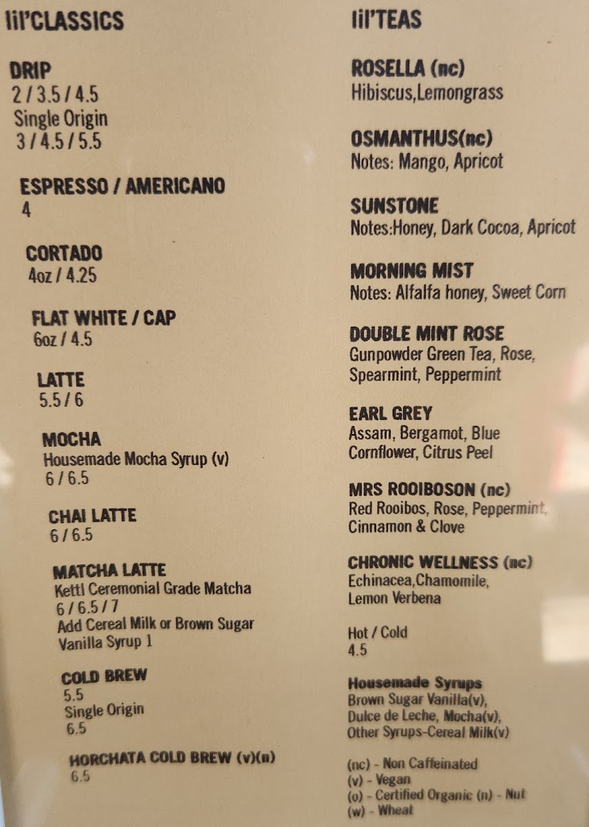 Welcome to lil’East Coffee, a delightful cafe nestled at 2734 N Eastern Ave in Los Angeles. This charming spot is a haven for coffee enthusiasts and food lovers alike. The menu showcases a variety of expertly crafted beverages that will tantalize your taste buds.